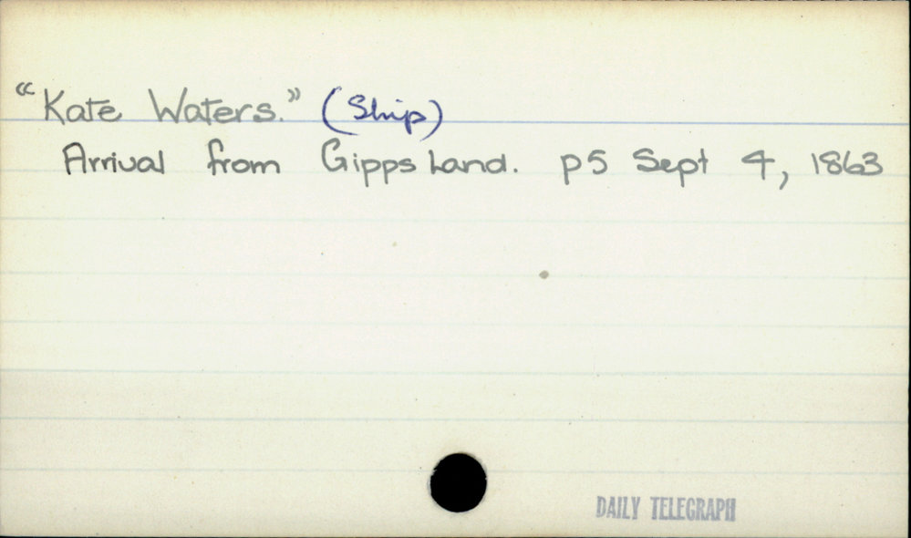 Dunedin Public Libraries (3rd Aug 2020). "Kate Waters" (Ship). In Website Dunedin Public Libraries. Retrieved 27th Mar 2026 06:52, from https://dunedin.recollect.co.nz/nodes/view/159237