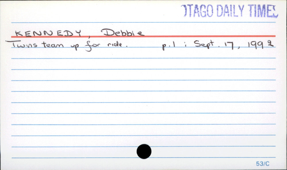 Dunedin Public Libraries (10th Aug 2020). KENNEDY, Debbie. In Website Dunedin Public Libraries. Retrieved 27th Mar 2026 06:55, from https://dunedin.recollect.co.nz/nodes/view/159994