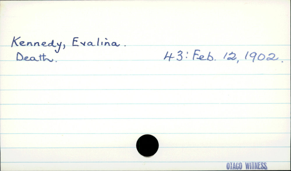 Dunedin Public Libraries (10th Aug 2020). Kennedy, Evalina. In Website Dunedin Public Libraries. Retrieved 27th Mar 2026 06:52, from https://dunedin.recollect.co.nz/nodes/view/160004