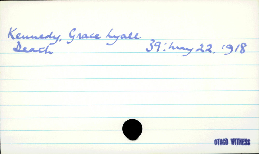 Dunedin Public Libraries (10th Aug 2020). Kennedy, Grace Lyall. In Website Dunedin Public Libraries. Retrieved 27th Mar 2026 07:02, from https://dunedin.recollect.co.nz/nodes/view/160007