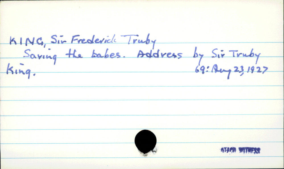 Dunedin Public Libraries (21st Aug 2020). King, Sir Frederick Truby. In Website Dunedin Public Libraries. Retrieved 27th Mar 2026 07:14, from https://dunedin.recollect.co.nz/nodes/view/160821