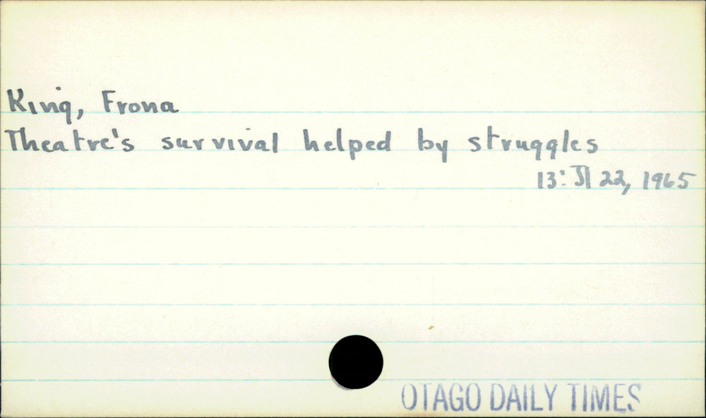 Dunedin Public Libraries (21st Aug 2020). KIng, Frona. In Website Dunedin Public Libraries. Retrieved 27th Mar 2026 07:13, from https://dunedin.recollect.co.nz/nodes/view/160831