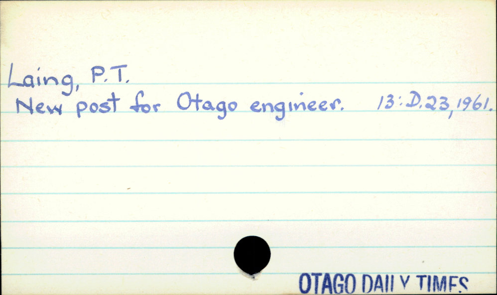 Dunedin Public Libraries (7th Sep 2020). Laing, P.T.. In Website Dunedin Public Libraries. Retrieved 27th Mar 2026 10:28, from https://dunedin.recollect.co.nz/nodes/view/162406