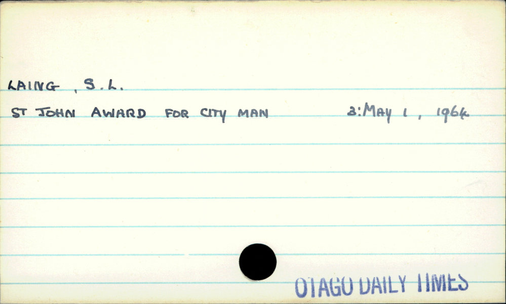 Dunedin Public Libraries (7th Sep 2020). Laing, S.L.. In Website Dunedin Public Libraries. Retrieved 27th Mar 2026 10:35, from https://dunedin.recollect.co.nz/nodes/view/162418