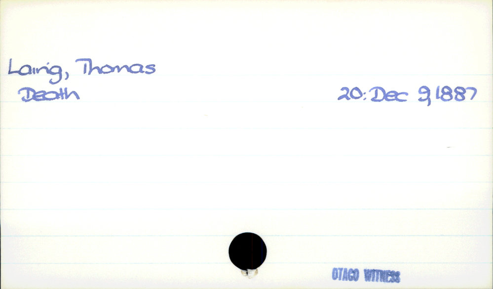 Dunedin Public Libraries (8th Sep 2020). Laing, Thomas. In Website Dunedin Public Libraries. Retrieved 27th Mar 2026 10:35, from https://dunedin.recollect.co.nz/nodes/view/162424