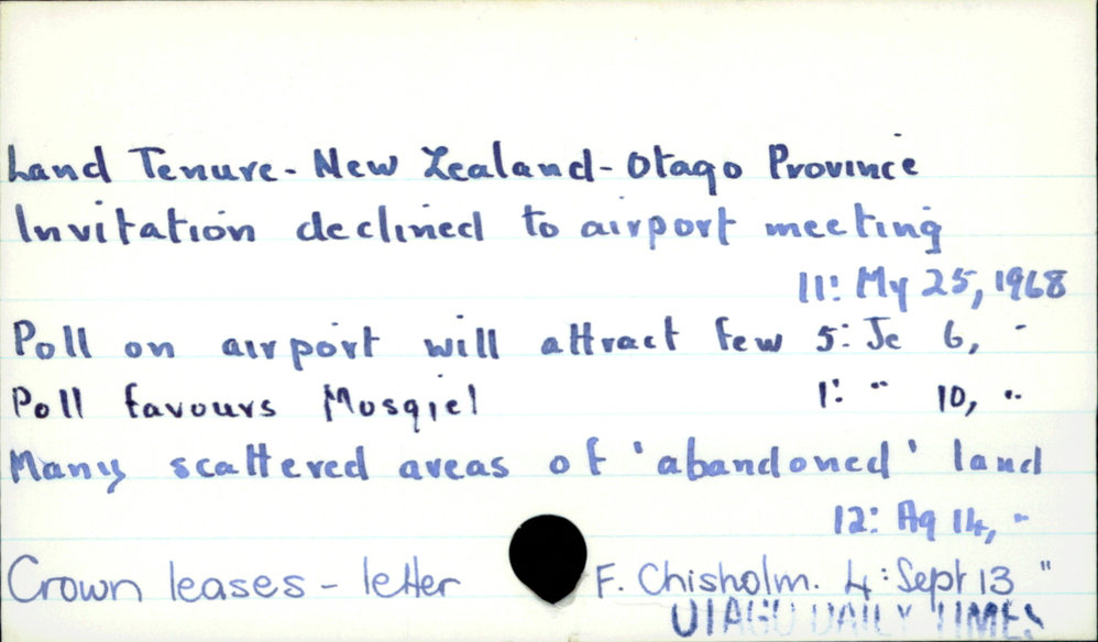 Dunedin Public Libraries (22nd Sep 2020). Land Tenure - New Zealand - Otago Province. In Website Dunedin Public Libraries. Retrieved 27th Mar 2026 07:04, from https://dunedin.recollect.co.nz/nodes/view/163138