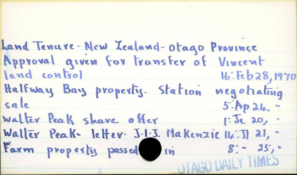 Dunedin Public Libraries (22nd Sep 2020). Land Tenure - New Zealand - Otago Province. In Website Dunedin Public Libraries. Retrieved 27th Mar 2026 07:06, from https://dunedin.recollect.co.nz/nodes/view/163143