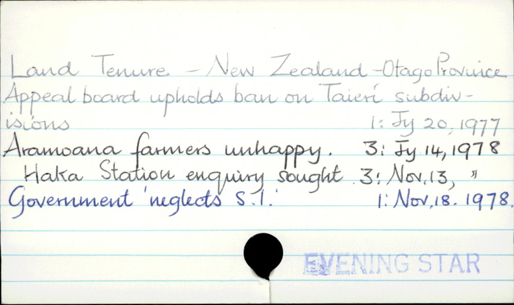 Dunedin Public Libraries (23rd Sep 2020). Land Tenure - New Zealand - Otago Province. In Website Dunedin Public Libraries. Retrieved 27th Mar 2026 07:03, from https://dunedin.recollect.co.nz/nodes/view/163153