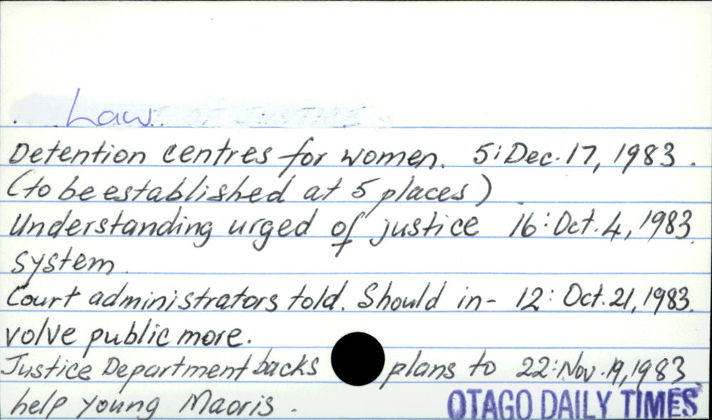 Dunedin Public Libraries (3rd Oct 2020). Law. In Website Dunedin Public Libraries. Retrieved 27th Mar 2026 07:13, from https://dunedin.recollect.co.nz/nodes/view/163890