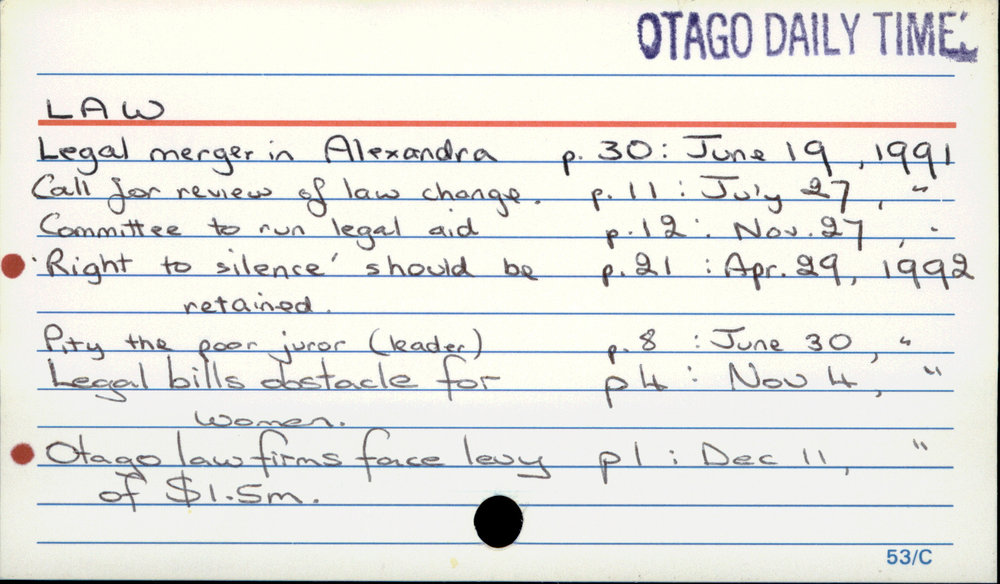 Dunedin Public Libraries (4th Oct 2020). Law. In Website Dunedin Public Libraries. Retrieved 27th Mar 2026 07:12, from https://dunedin.recollect.co.nz/nodes/view/163908