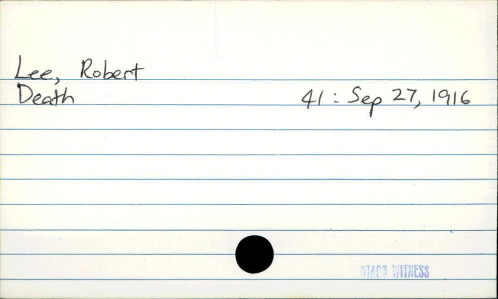 Dunedin Public Libraries (13th Oct 2020). Lee, Robert. In Website Dunedin Public Libraries. Retrieved 27th Mar 2026 07:13, from https://dunedin.recollect.co.nz/nodes/view/164620
