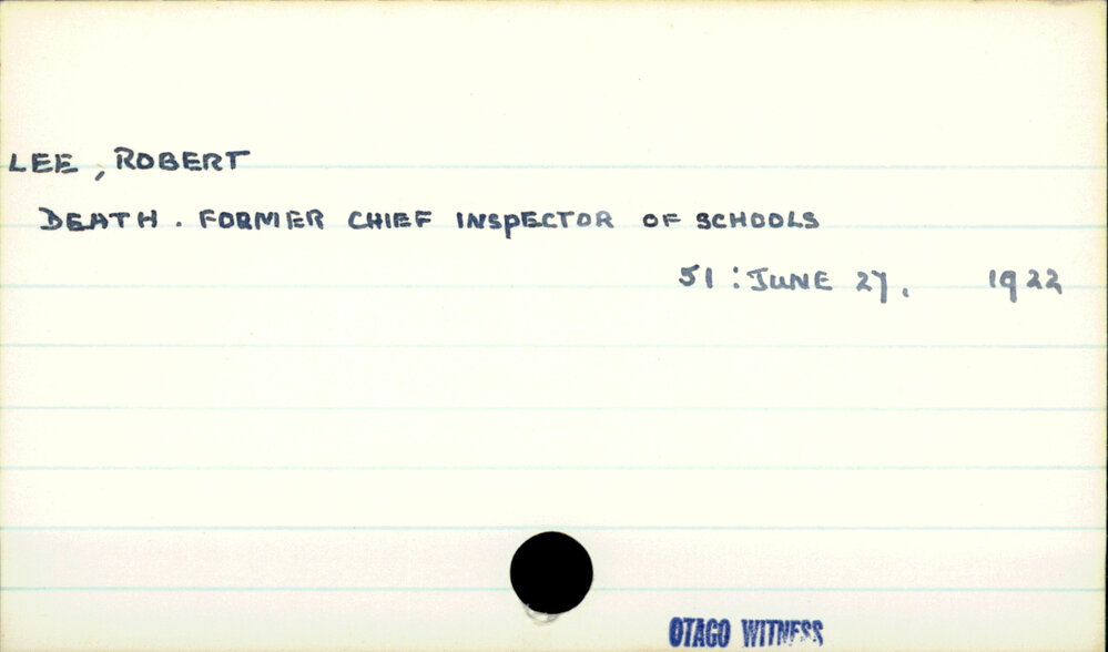 Dunedin Public Libraries (13th Oct 2020). Lee, Robert. In Website Dunedin Public Libraries. Retrieved 27th Mar 2026 07:14, from https://dunedin.recollect.co.nz/nodes/view/164621