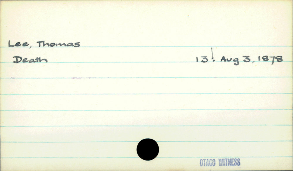 Dunedin Public Libraries (13th Oct 2020). Lee, Thomas. In Website Dunedin Public Libraries. Retrieved 27th Mar 2026 07:13, from https://dunedin.recollect.co.nz/nodes/view/164625