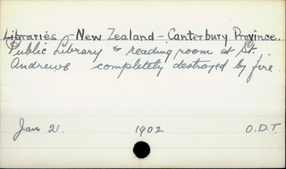 Dunedin Public Libraries (22nd Oct 2020). Libraries - New Zealand - Canterbury Province. In Website Dunedin Public Libraries. Retrieved 27th Mar 2026 07:01, from https://dunedin.recollect.co.nz/nodes/view/165418
