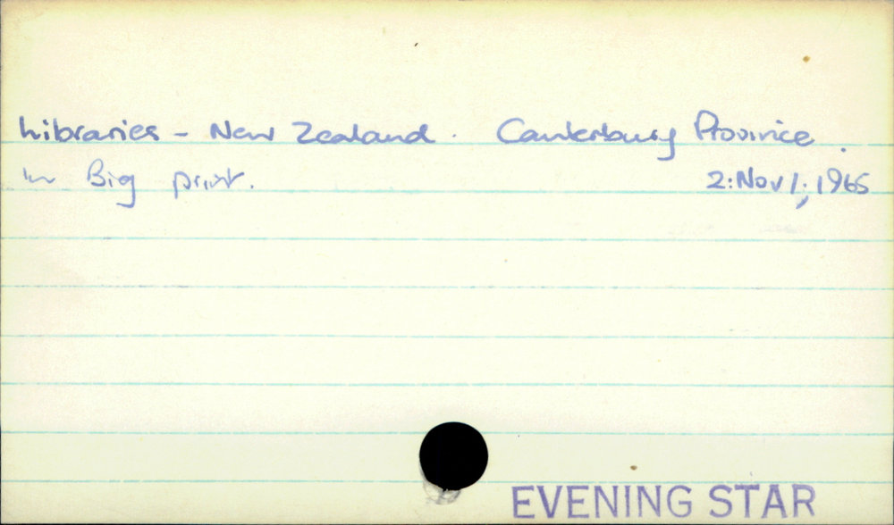 Dunedin Public Libraries (22nd Oct 2020). Libraries - New Zealand - Canterbury Province. In Website Dunedin Public Libraries. Retrieved 27th Mar 2026 06:52, from https://dunedin.recollect.co.nz/nodes/view/165427