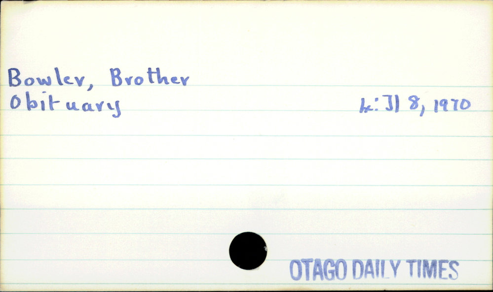 Dunedin Public Libraries (2nd Jan 2019). Bowler, Brother. In Website Dunedin Public Libraries. Retrieved 16th Apr 2026 11:20, from https://dunedin.recollect.co.nz/nodes/view/16549