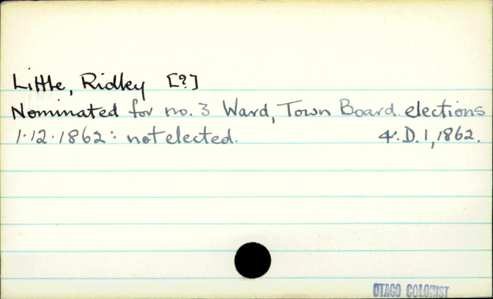 Dunedin Public Libraries (1st Nov 2020). Little, Ridley [?]. In Website Dunedin Public Libraries. Retrieved 27th Mar 2026 16:06, from https://dunedin.recollect.co.nz/nodes/view/166130