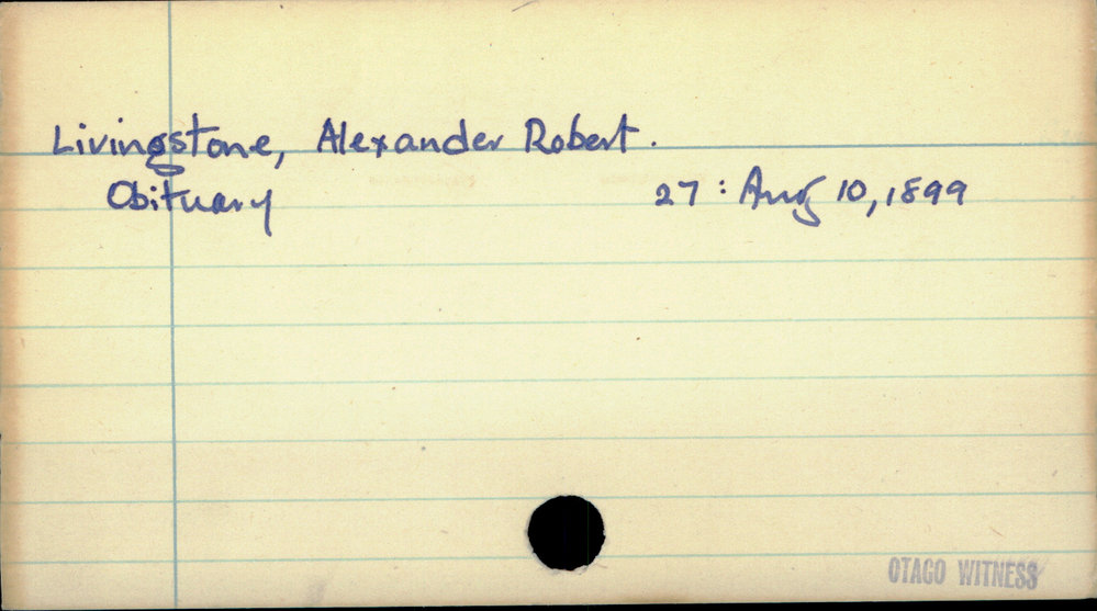 Dunedin Public Libraries (3rd Nov 2020). Livingstone, Alexander Robert. In Website Dunedin Public Libraries. Retrieved 27th Mar 2026 07:10, from https://dunedin.recollect.co.nz/nodes/view/166185