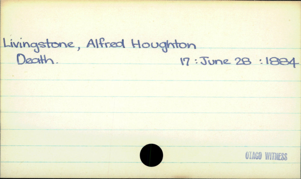 Dunedin Public Libraries (3rd Nov 2020). Livingstone, Alfred Houghton. In Website Dunedin Public Libraries. Retrieved 27th Mar 2026 07:18, from https://dunedin.recollect.co.nz/nodes/view/166186