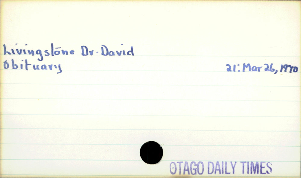 Dunedin Public Libraries (2nd Nov 2020). Livingstone, Dr. David. In Website Dunedin Public Libraries. Retrieved 27th Mar 2026 07:10, from https://dunedin.recollect.co.nz/nodes/view/166189