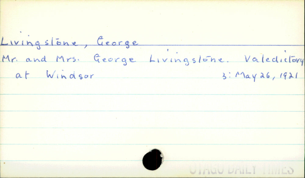 Dunedin Public Libraries (2nd Nov 2020). Livingstone, George. In Website Dunedin Public Libraries. Retrieved 27th Mar 2026 07:18, from https://dunedin.recollect.co.nz/nodes/view/166194
