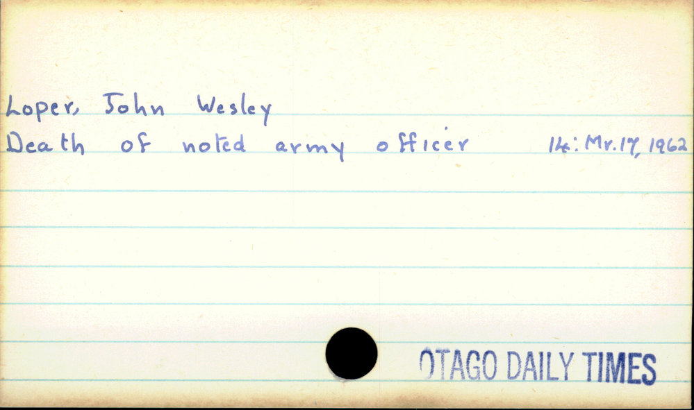 Dunedin Public Libraries (12th Nov 2020). Loper, John Wesley. In Website Dunedin Public Libraries. Retrieved 27th Mar 2026 07:13, from https://dunedin.recollect.co.nz/nodes/view/166988