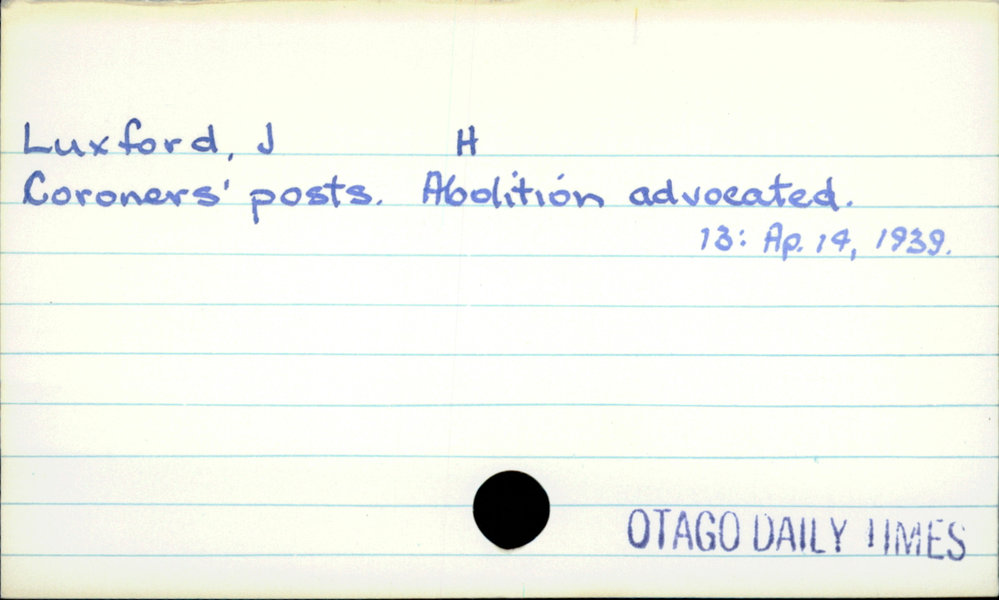 Dunedin Public Libraries (23rd Nov 2020). Luxford, J H. In Website Dunedin Public Libraries. Retrieved 27th Mar 2026 03:39, from https://dunedin.recollect.co.nz/nodes/view/167739