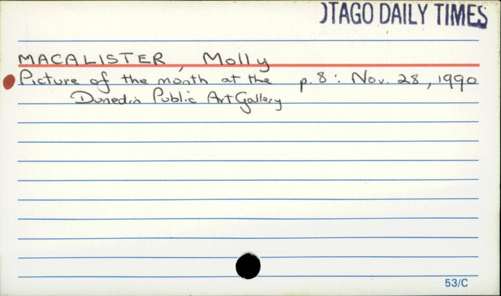 Dunedin Public Libraries (26th Nov 2020). Macalister, Molly. In Website Dunedin Public Libraries. Retrieved 5th Apr 2026 20:32, from https://dunedin.recollect.co.nz/nodes/view/167979