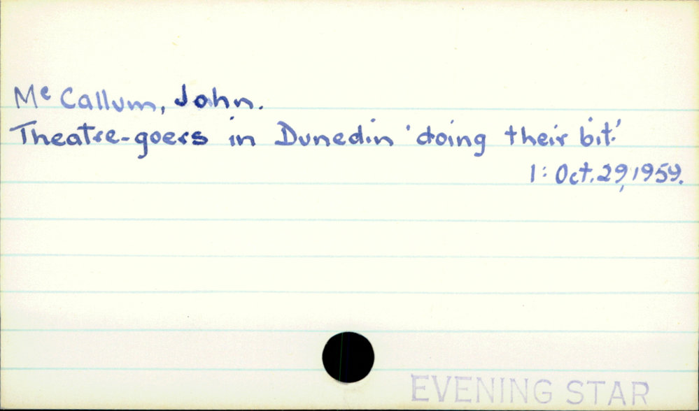 Dunedin Public Libraries (2nd Dec 2020). McCallum, John.. In Website Dunedin Public Libraries. Retrieved 27th Mar 2026 03:41, from https://dunedin.recollect.co.nz/nodes/view/168505