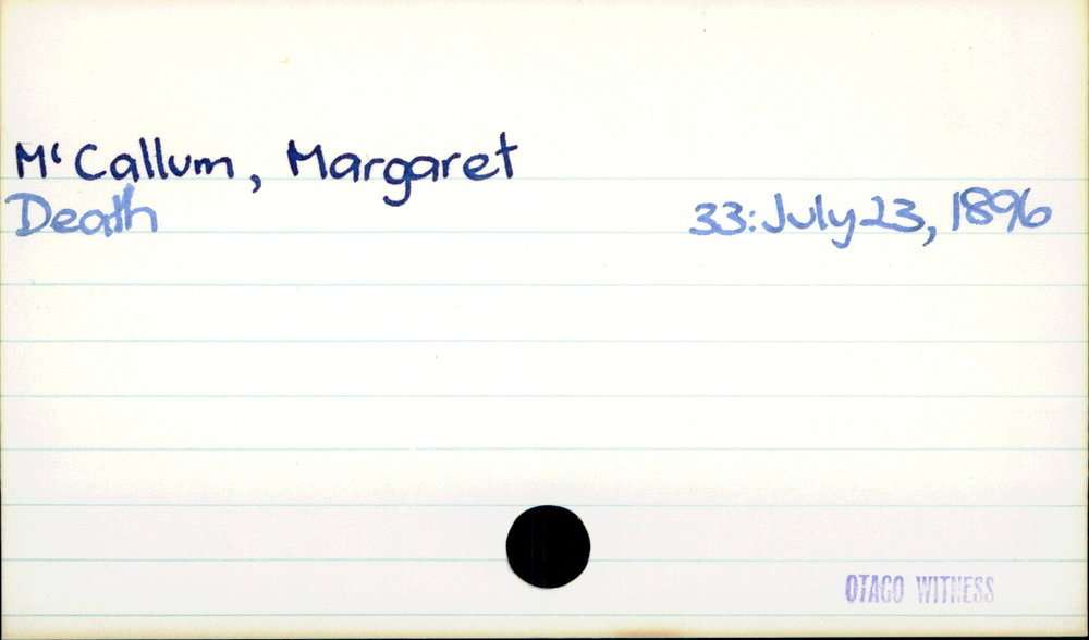 Dunedin Public Libraries (3rd Dec 2020). McCallum, Margaret. In Website Dunedin Public Libraries. Retrieved 27th Mar 2026 03:38, from https://dunedin.recollect.co.nz/nodes/view/168511