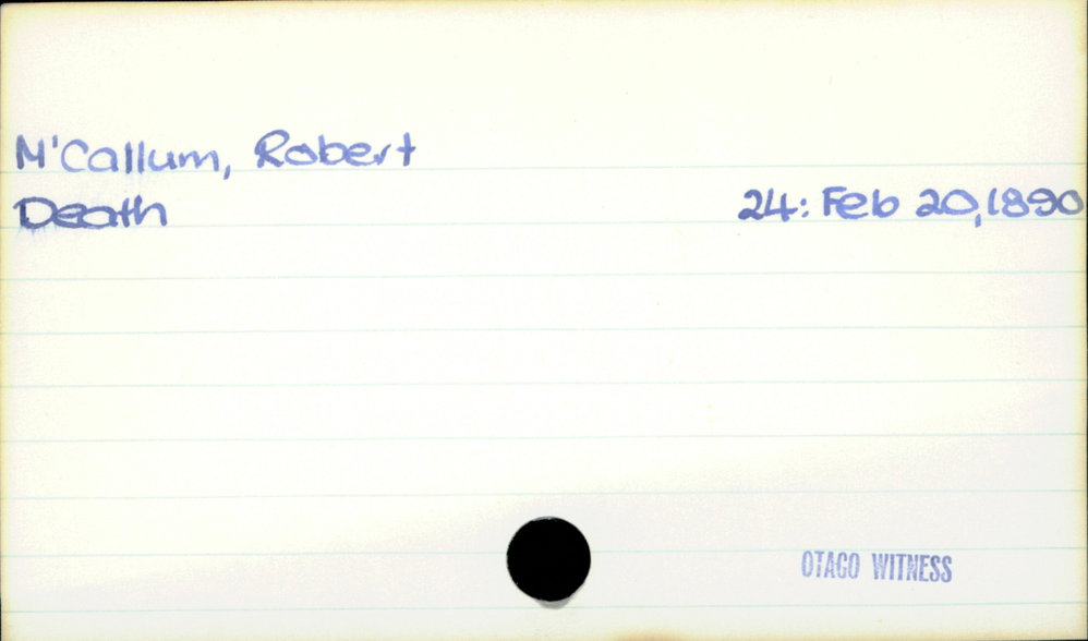 Dunedin Public Libraries (3rd Dec 2020). McCallum, Robert. In Website Dunedin Public Libraries. Retrieved 27th Mar 2026 03:39, from https://dunedin.recollect.co.nz/nodes/view/168516
