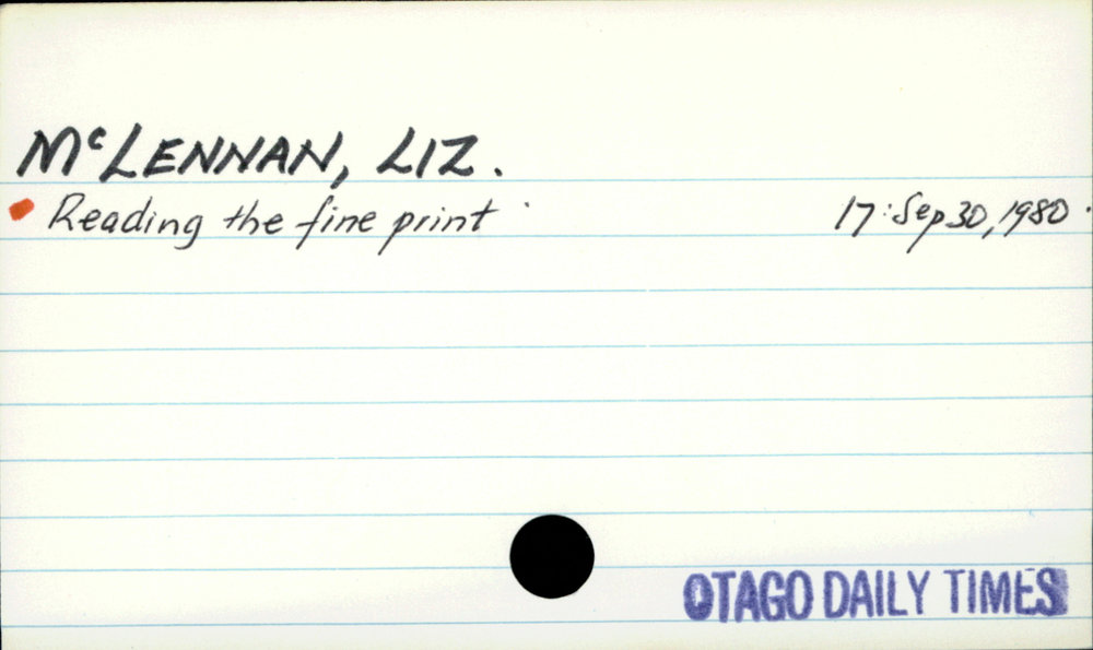 Dunedin Public Libraries (15th Dec 2020). McLennan, Liz. In Website Dunedin Public Libraries. Retrieved 27th Mar 2026 07:12, from https://dunedin.recollect.co.nz/nodes/view/169287