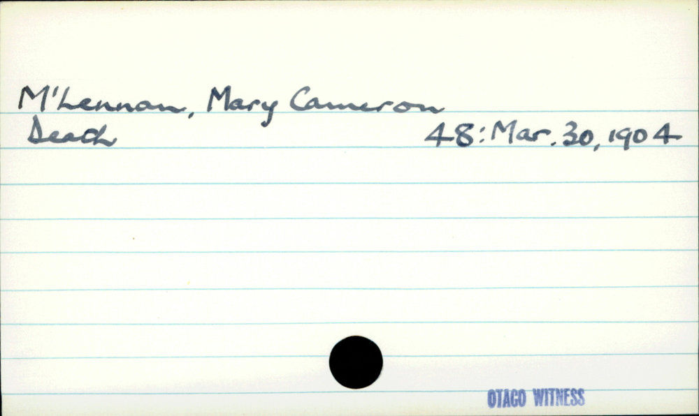 Dunedin Public Libraries (15th Dec 2020). McLennan, Mary Cameron. In Website Dunedin Public Libraries. Retrieved 27th Mar 2026 07:12, from https://dunedin.recollect.co.nz/nodes/view/169290