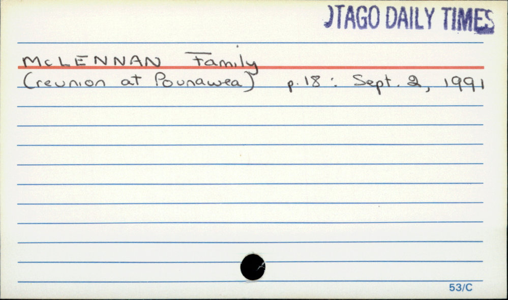 Dunedin Public Libraries (15th Dec 2020). McLennan Family. In Website Dunedin Public Libraries. Retrieved 27th Mar 2026 07:12, from https://dunedin.recollect.co.nz/nodes/view/169308