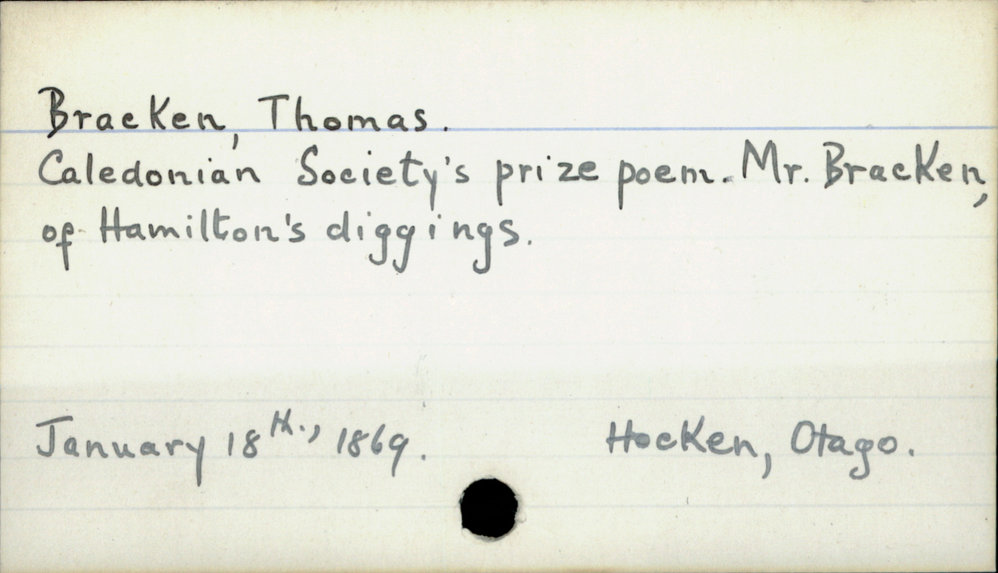 Dunedin Public Libraries (8th Jan 2019). Bracken, Thomas. In Website Dunedin Public Libraries. Retrieved 4th Apr 2026 22:03, from https://dunedin.recollect.co.nz/nodes/view/17001