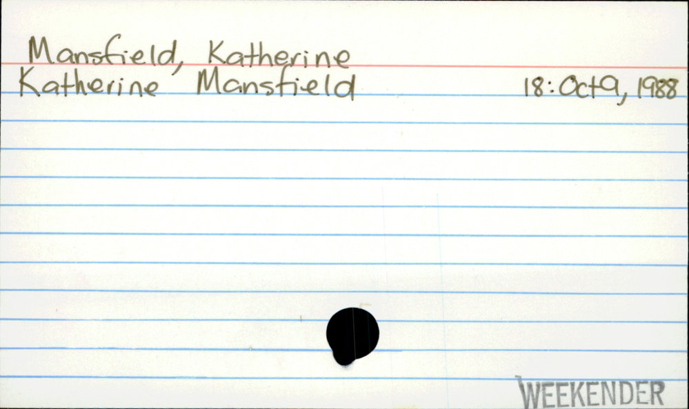 Dunedin Public Libraries (28th Dec 2020). Mansfield, Katherine. In Website Dunedin Public Libraries. Retrieved 27th Mar 2026 02:08, from https://dunedin.recollect.co.nz/nodes/view/170054