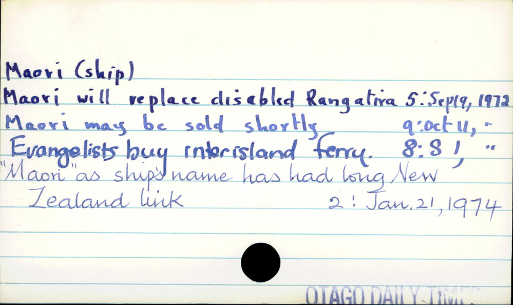 Dunedin Public Libraries (11th Jan 2021). Maori (ship). In Website Dunedin Public Libraries. Retrieved 27th Mar 2026 03:39, from https://dunedin.recollect.co.nz/nodes/view/170843