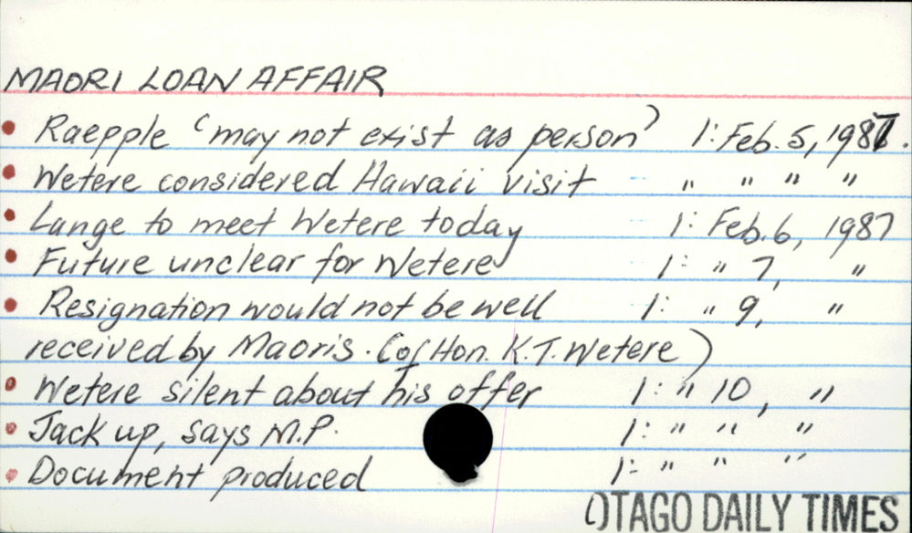 Dunedin Public Libraries (11th Jan 2021). Maori Loan Affair. In Website Dunedin Public Libraries. Retrieved 27th Mar 2026 03:39, from https://dunedin.recollect.co.nz/nodes/view/170850