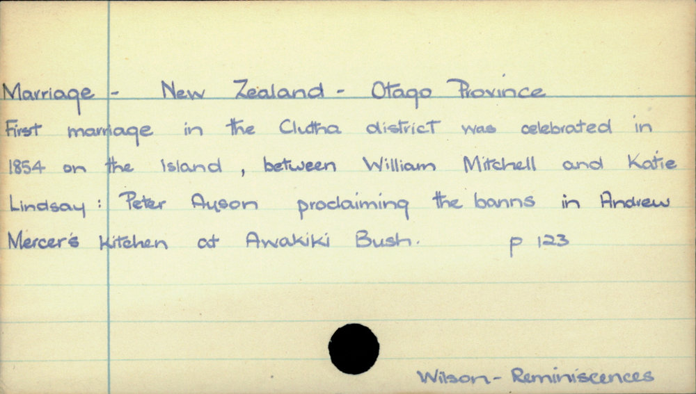 Dunedin Public Libraries (15th Jan 2021). Marriage - New Zealand - Otago Province. In Website Dunedin Public Libraries. Retrieved 27th Mar 2026 06:52, from https://dunedin.recollect.co.nz/nodes/view/171210