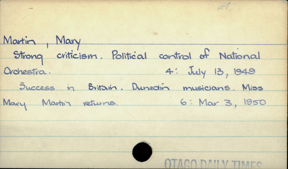 Dunedin Public Libraries (20th Jan 2021). Martin, Mary. In Website Dunedin Public Libraries. Retrieved 27th Mar 2026 03:39, from https://dunedin.recollect.co.nz/nodes/view/171696
