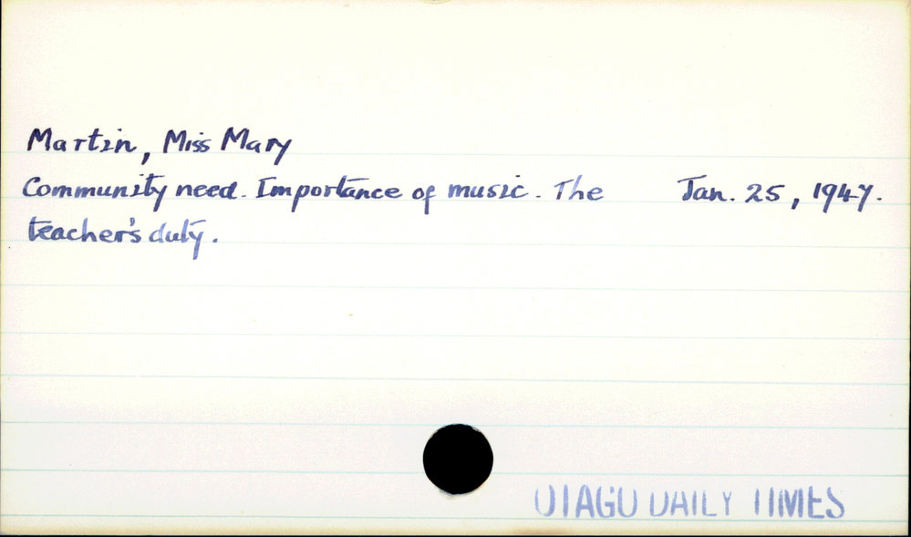 Dunedin Public Libraries (21st Jan 2021). Martin, Mary. In Website Dunedin Public Libraries. Retrieved 27th Mar 2026 03:39, from https://dunedin.recollect.co.nz/nodes/view/171697