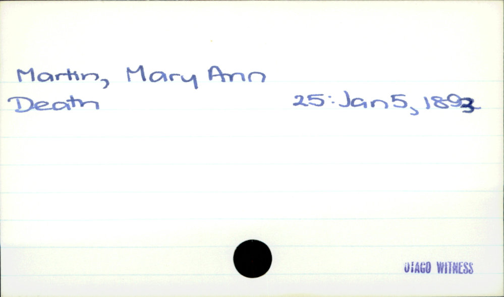 Dunedin Public Libraries (20th Jan 2021). Martin, Mary Ann. In Website Dunedin Public Libraries. Retrieved 27th Mar 2026 03:40, from https://dunedin.recollect.co.nz/nodes/view/171703