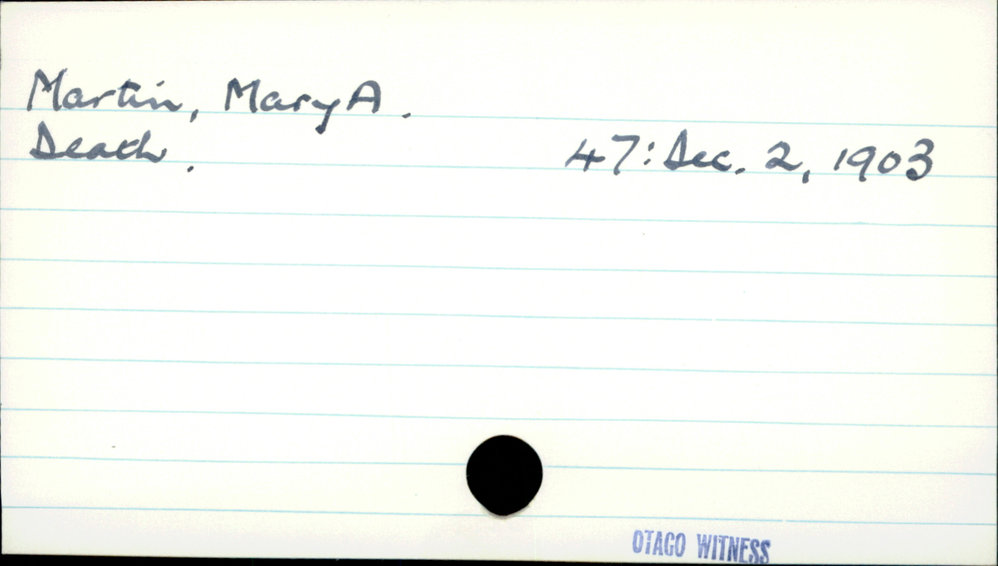 Dunedin Public Libraries (20th Jan 2021). Martin, Mary A.. In Website Dunedin Public Libraries. Retrieved 27th Mar 2026 03:40, from https://dunedin.recollect.co.nz/nodes/view/171704
