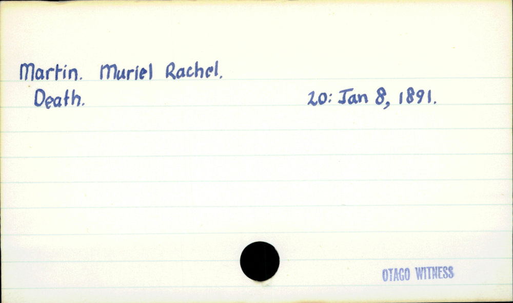 Dunedin Public Libraries (20th Jan 2021). Martin, Muriel Rachel. In Website Dunedin Public Libraries. Retrieved 27th Mar 2026 03:40, from https://dunedin.recollect.co.nz/nodes/view/171710