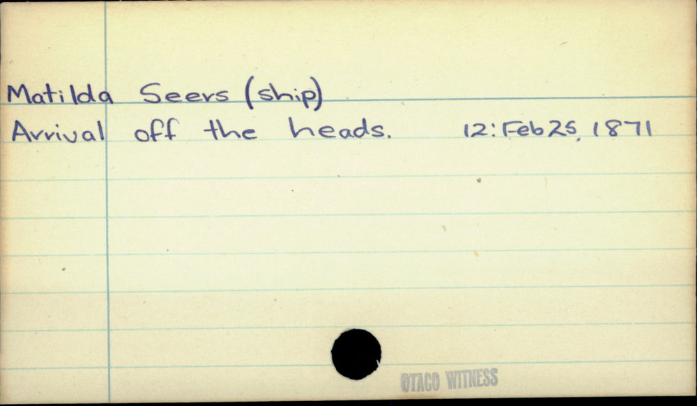 Dunedin Public Libraries (29th Jan 2021). Matilda Seers (ship). In Website Dunedin Public Libraries. Retrieved 27th Mar 2026 03:39, from https://dunedin.recollect.co.nz/nodes/view/172495