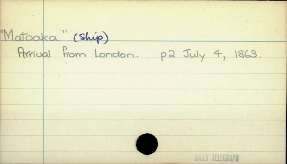 Dunedin Public Libraries (29th Jan 2021). "Matoaka" (Ship). In Website Dunedin Public Libraries. Retrieved 27th Mar 2026 03:38, from https://dunedin.recollect.co.nz/nodes/view/172500