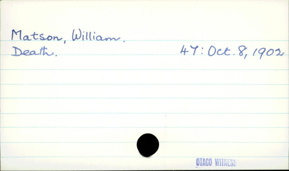 Dunedin Public Libraries (30th Jan 2021). Matson, William.. In Website Dunedin Public Libraries. Retrieved 27th Mar 2026 03:41, from https://dunedin.recollect.co.nz/nodes/view/172509