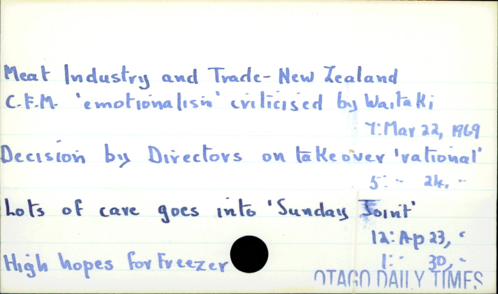 Dunedin Public Libraries (15th Feb 2021). Meat Industry and Trade - New Zealand - . In Website Dunedin Public Libraries. Retrieved 27th Mar 2026 03:39, from https://dunedin.recollect.co.nz/nodes/view/173337