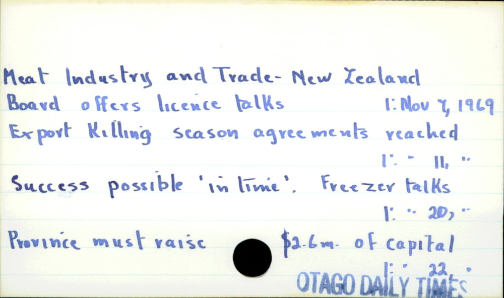 Dunedin Public Libraries (15th Feb 2021). Meat Industry and Trade - New Zealand. In Website Dunedin Public Libraries. Retrieved 27th Mar 2026 03:38, from https://dunedin.recollect.co.nz/nodes/view/173347