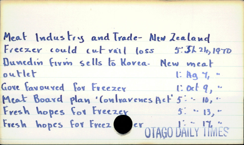 Dunedin Public Libraries (15th Feb 2021). Meat Industry and Trade - New Zealand. In Website Dunedin Public Libraries. Retrieved 27th Mar 2026 03:39, from https://dunedin.recollect.co.nz/nodes/view/173350